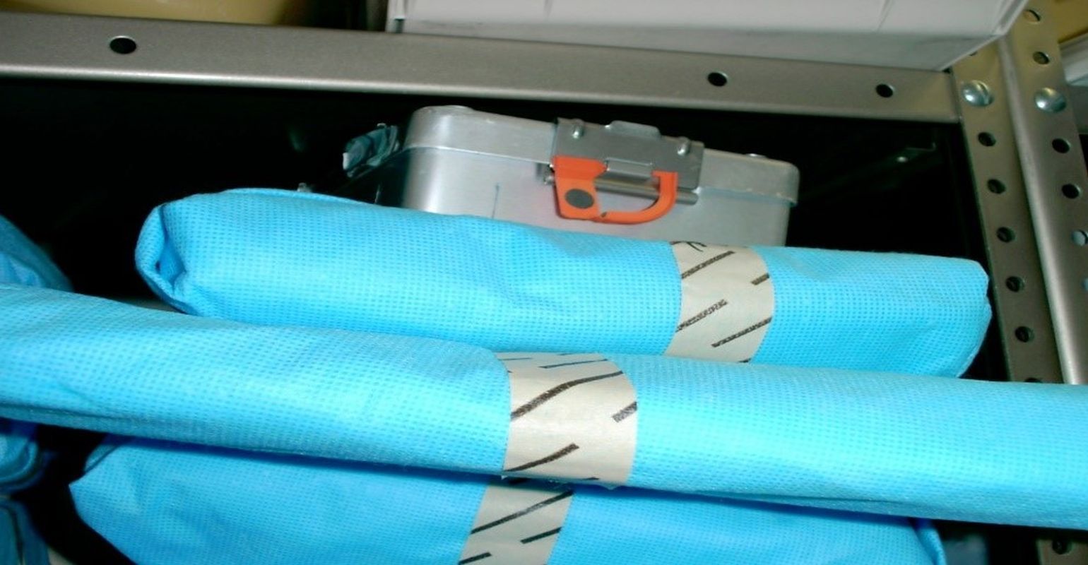 Either closed or open wire shelving can be used however wire shelving may require more attention for cleaning. In order for items to be protected, there should be sufficient space allocated for storage of sterile items. When items are “crushed” into a storage bin, it can damage the packaging. In addition, the instrument may be subjected to damage.