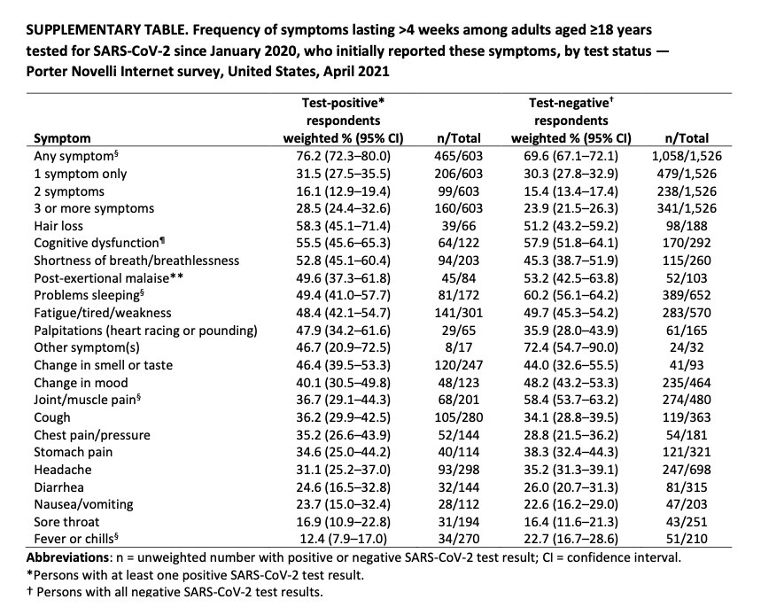 The CDC, in a recent study in its Morbidity and Mortality Weekly Report, says long COVID-19 symptoms exceed 4 weeks “among [individuals] who self-reported ever receiving a positive SARS-CoV-2 test result with the prevalence of similar symptoms among [individuals] who reported always receiving a negative test result.”3