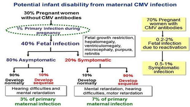 Thirty percent of pregnant women do not have CMV antibodies. One percent of this group will contract CMV for the first time during pregnancy. Courtesy of Kobe University