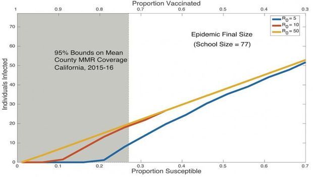 The researchers developed a mathematical model based on current vaccination estimates in California and found that high vaccination levels were required to prevent transmission.