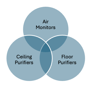 This Venn diagram explores how 3 essential elements of air purification and monitoring intersect: