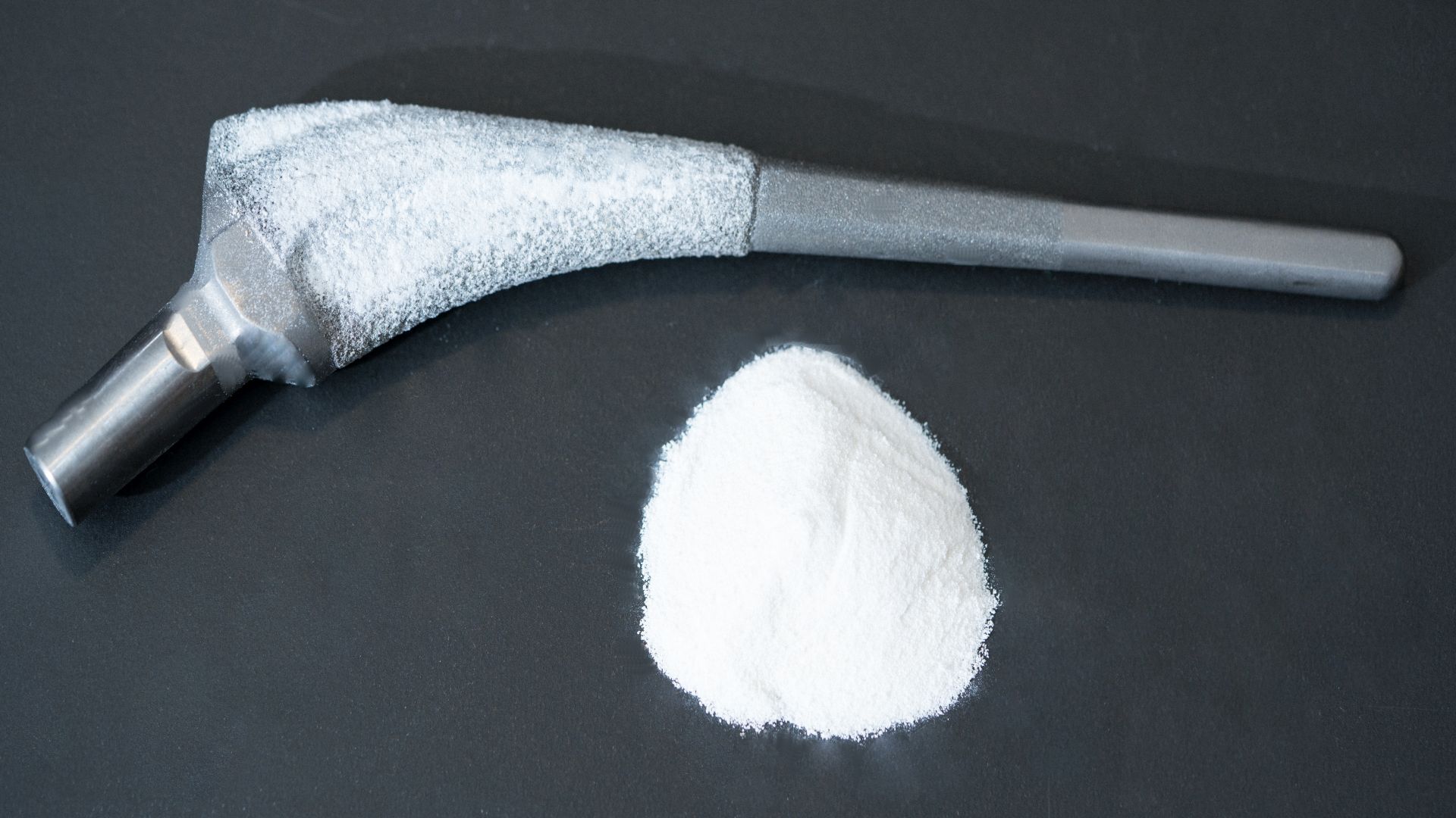 A hip replacement implant is coated in antibiotic microspheres developed by Terry Clyburn, MD, Houston Methodist orthopedic surgeon. The microspheres are as small as grains of salt and designed to release antibiotics at a level high enough to kill infections for at least three to six weeks – the timeframe when an infection is most likely to develop. Courtesy of Houston Methodist