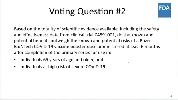 The committee then took a temporary recess and afterwards authorized the Pfizer booster for those individuals 65 years of age and old, and to individuals at high risk for severe COVID-19.