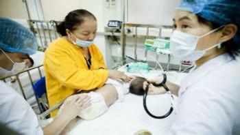 Nguyen Thi Thanh Thuy watches over her 2-year-old son as he takes quick, short breaths in a quarantined intensive care unit (ICU) at Hanoi’s National Pediatric Hospital. Like the 40 other children in the unit, Thuy’s son has a severe measles infection. Since the beginning of 2014, Viet Nam has reported more than 3,500 confirmed measles infections. More than 86 percent of those infected have not been immunized or their vaccination status is unknown.