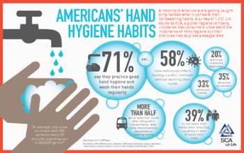 A startling number of Americans may be putting their health at risk by not practicing good hand hygiene. When asked about their specific handwashing habits, a vast majority of adults (71 percent) say they regularly wash their hands, but that number may be grossly exaggerated. Nearly 6 in 10 (58 percent) admit that they have witnessed others leaving a public restroom without washing their hands. More than one-third of Americans (35 percent) have witnessed co-workers leaving facilities without washing, and 1 in 5 consumers surveyed (20 percent) have witnessed restaurant employees not washing their hands at all. The worst offenders seem to be men by a significant margin.