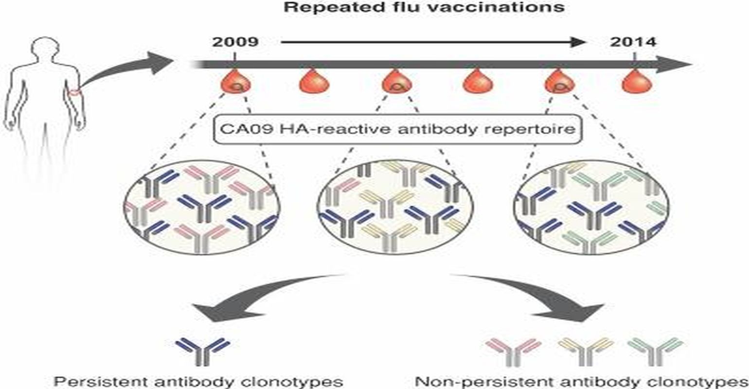 These persistent antibodies continue to be produced by the immune system for years and can affect our ability to generate novel antibodies that recognize unique molecular features of a new seasonal strain.