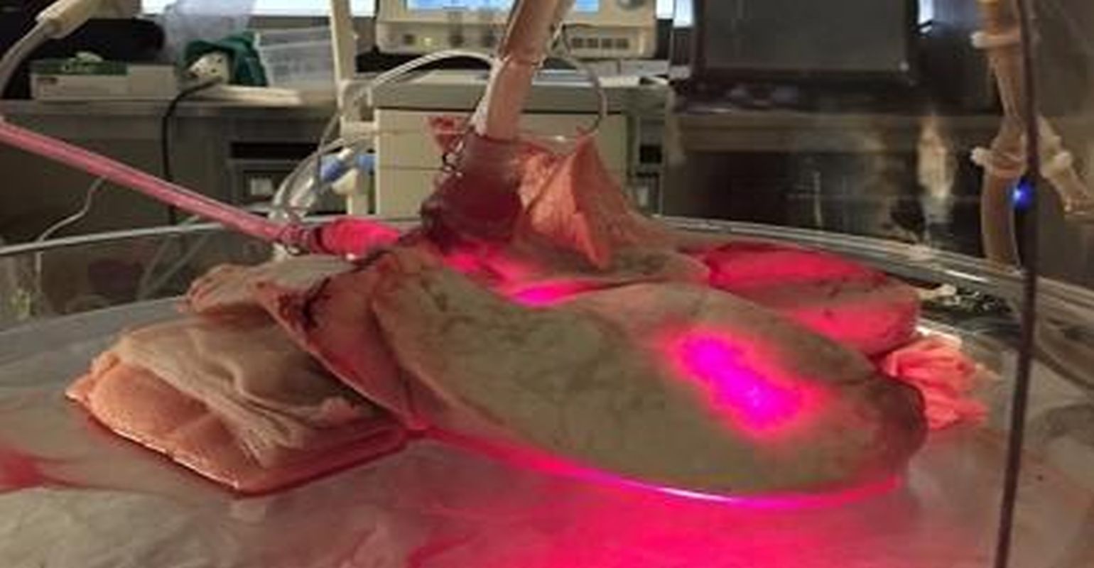 During perfusion, while the researchers make the liquid circulate in the lung to be transplanted, they add molecules to the lung tissue, and biophotonic decontamination takes place directly in the organ through irradiation with red light with a wavelength of 660 nanometers (nm) until photodynamic oxidation eliminates the microorganisms in the tissue.