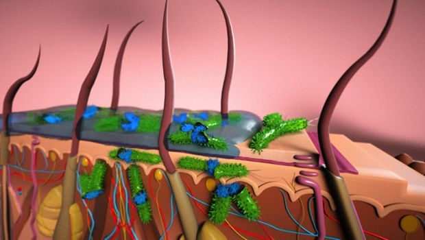Like a protective tent over a colony of harmful bacteria, biofilms make the treatment of skin infections especially difficult. Microorganisms protected in a biofilm pose a significant health risk due to their antibiotic resistance and recalcitrance to treatment, and biofilm-protected bacteria account for some 80 percent of total bacterial infections in humans and are 50 to 1,000 times more resistant to antibiotics than simpler bacterial infections.