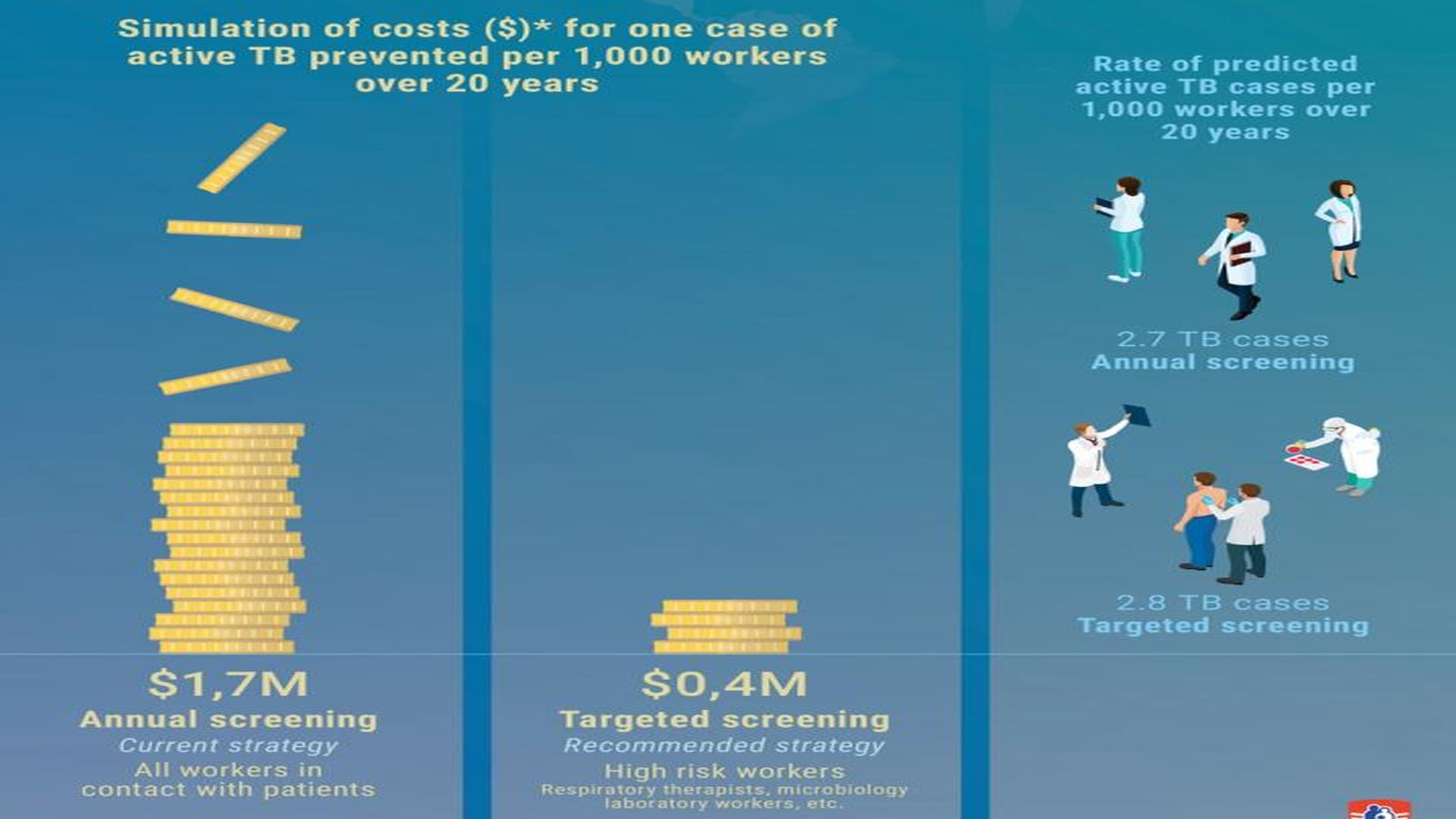 Caused by the bacteria Mycobacterium tuberculosis, TB remains a leading cause of morbidity and mortality worldwide. In its active phase, it is transmitted in droplets when a patient coughs or sneezes. After first contact with the microbe, the disease can develop rapidly or remain latent for several years before activating. Routine screening and treatment of latent TB infection has traditionally been an important part of TB prevention in Canadian and US healthcare institutions, but recent data have called into question its cost effectiveness