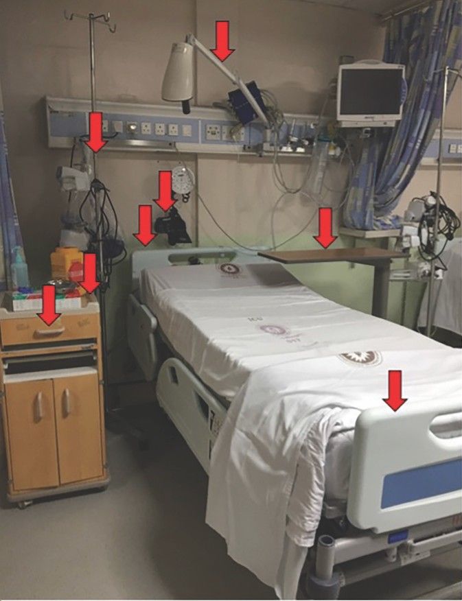 Figure 3. Example of high-touch surfaces in a specialized patient area12