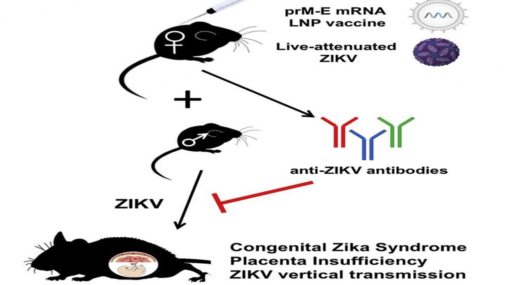 The current study is the first animal model study to demonstrate the protection conferred by experimental Zika virus vaccines when administered to female mice before they become pregnant and infected with Zika virus. Researchers gave 20 non-pregnant female mice two injections of the mRNA vaccine candidate 28 days apart and gave a separate group of 20 non-pregnant mice two injections of a placebo at the same time points. Another group of 18 female mice received a single immunization with the live-attenuated vaccine while a control group of 11 mice received a placebo injection. Subsequent tests revealed that mice that received mRNA experimental vaccine or live-attenuated experimental vaccine produced high levels of neutralizing antibodies against Zika virus in their blood.