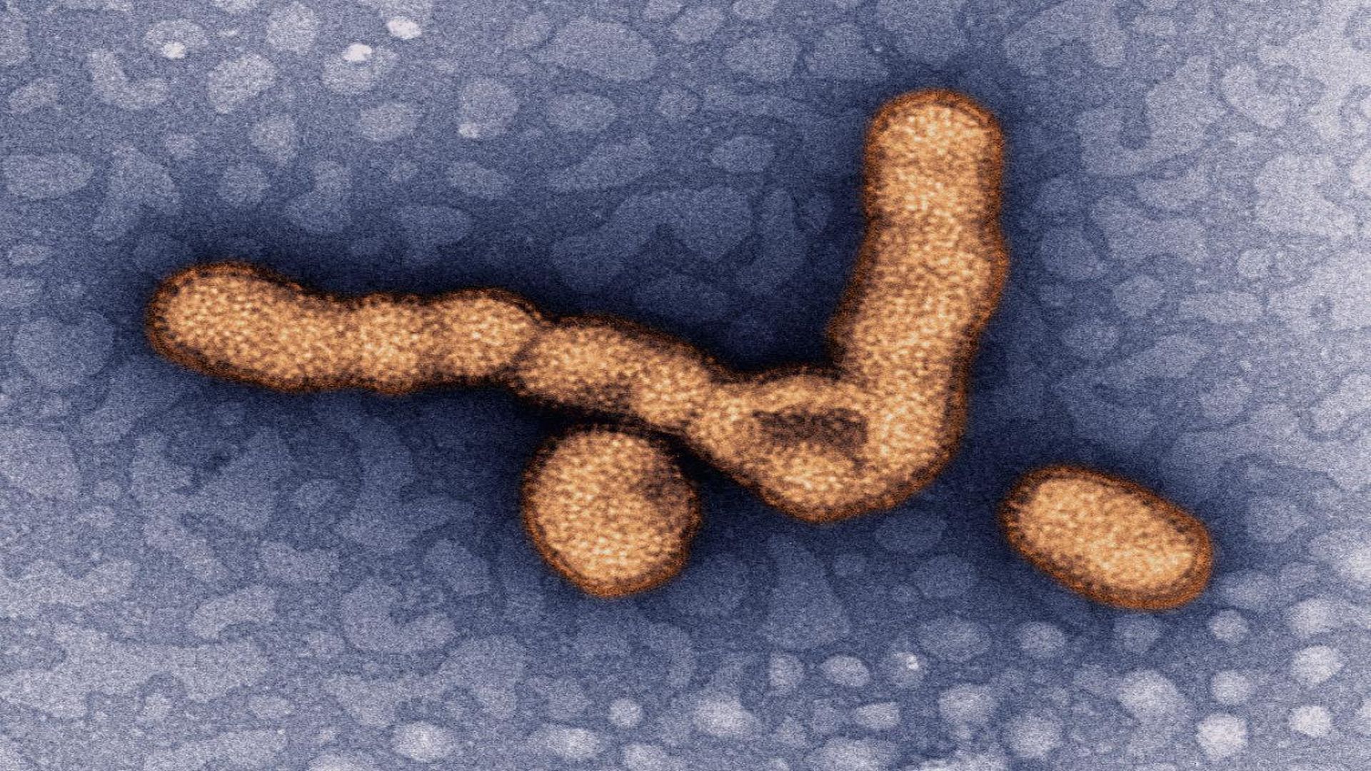 Colorized transmission electron micrograph showing H1N1 influenza virus particles. Courtesy of NIAID