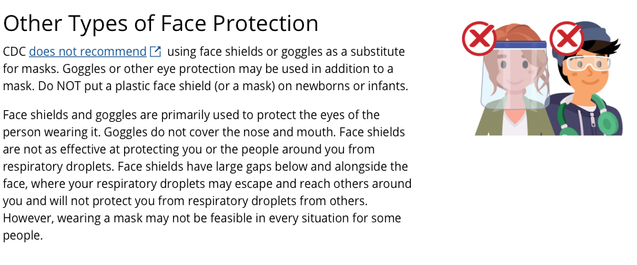 “The mask alone provides such a significant improvement that it is difficult to tell, based on this simple simulation, whether the protection afforded by a surgical mask combined with a face shield is improved,” the study states. “Face shields might provide eye protection if when worn as a supplement to the mask, but the role of the eyes in transmission of SARS CoV-2 is not well established.”