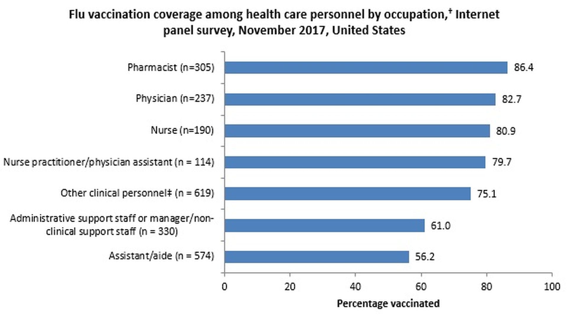 Source: CDC; Health Care Personnel and Flu Vaccination, Internet Panel Survey, United States, November 2017