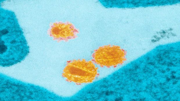 HIV particles. Courtesy of Institut Pasteur, Charles Dauguet