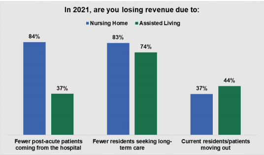 Almost half of nursing homes and assisted living facilities are operating at a loss, while 84% of nursing homes are losing revenue this year because fewer post-acute patients are coming to them from hospitals.