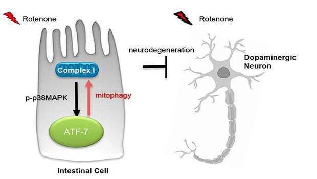 It turns out there was. The roundworms' immune defenses, activated when the rotenone was introduced, discarded many of the defected mitochondria, halting a sequence that would've led to the loss of dopamine-producing neurons. Importantly, the immune response originated in the intestine, not the nervous system.