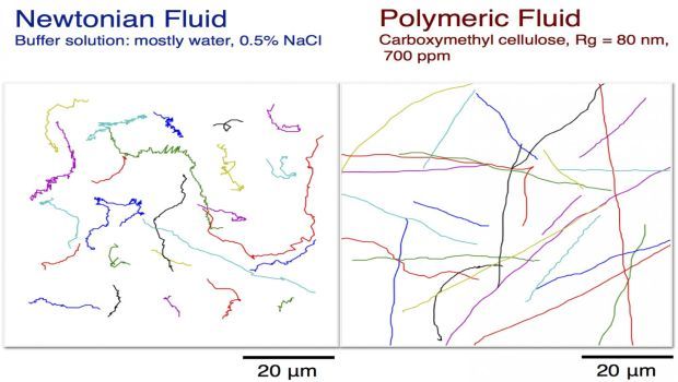 The researchers were also able to track individual bacteria, and even single polymer molecules, which when added to water in different amounts, make it more viscous and elastic.