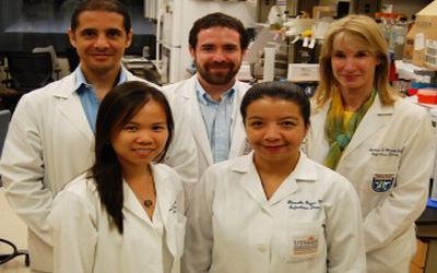 UTHealth superbug investigators from left to right are (front row) Truc T. Tran, Pharm D., and Jinnethe Reyes; and (back row) Cesar Arias, MD, PhD, Jose Munita, MD, and Barbara E. Murray, MD.