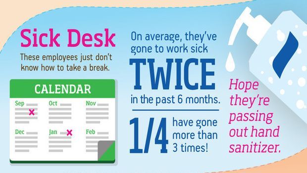 • Sixty-nine percent of working Americans don't take sick days because they don't want to miss a day of work, even if they're actually sick