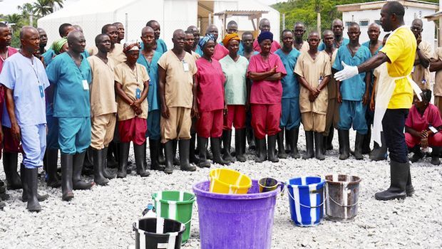 Training of Ebola health workers in Liberia. Photo courtesy of WHO/M. Winkler.